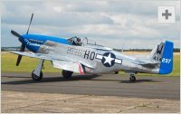 In 1940 North American Aviation President James J. Kindelberger approached the British Purchasing Commission to sell North American Aviation's twin engined bomber, the B-25 Mitchell. However, with the Royal Air Force in need for fighter aircraft and the Curtiss P-40 Kittyhawk the only aircraft close to the specification required, but only available in limited numbers, North American Aviation was asked, under licence from Curtiss-Wright, to produce the P-40. North American Aviation felt that they could have a better aircraft working quicker than it would take a production line to produce the P-40 to be set up. Whilst it was agreed for North American Aviation to supply this new aircraft instead, it was required for a prototype to be ready in 120 days. North American Aviation already had a design outline for an aircraft which benefited from information from the air war in Europe. Under the leadership of Raymond Rice and Edgar Schmued the design team set about fitting the new fighters design to the specification laid out by the British. On the 9th September 1940, just 102 days later, the prototype airframe, designated NA-73X, was completed, minus its 1,100-hp Allison V-1710-39 engine which was running behind schedule. On the 26th October 1940 the prototype made its maiden flight. It would be with the Royal Air Force that the aircraft, known as the Mustang Mk I, the first production aircraft flew on the 23rd April 1941, would begin its operational career. Powered by the 1,150-hp Allison V-1710-39 engine, at higher altitude the performance of the aircraft suffered as its Allison engine power output fell rapidly as it climbed, its top speed was 382 mph, range 1,000 miles with a service ceiling of 31,350 ft. Armament was four 0.50-in machine-guns and four 0.30-in machine-guns. It would be No. 26 Squadron based at RAF Gatwick, who were part of Army Co-operation Command, who received the first Mustang Mk Is on the 5th January 1942 to replace their Curtiss P-40s. They would fly their first operation on the 5th May 1942. Its first aerial victory came on the 19th August 1942 during the Dieppe Raid when Flying Officer Hollis Hills of No. 414 Squadron, Royal Canadian Air Force shot down a Focke-Wulf Fw 190. Two months later the Mustang showed its potential for long-range escort duties when on the 22nd October 1942, on an attack on targets in Germany, it became the first Royal Air Force single-engined fighter to cross the German border from its base in Britain. One of the conditions to allow North American Aviation to supply the Royal Air Force with its NA-73 design was that two aircraft were given to the United States Army Air Corps for evaluation under the designation XP-51. Before these two aircraft were supplied to the USAAC they had already ordered 150 more aircraft, with some to be sent to Britain under Lend-Lease. These aircraft, also known as the Mustang Mk IA, featured self-sealing fuel tanks and were powered by the 1,150-hp Allison V-1710-39 engine. This gave the aircraft a top speed of 390 mph, a range of 1,050 miles and a service ceiling of 32,000 ft. Armament consisted of four 0.50-in machine-guns. The A-36 was the first P-51 variant to go into operational service with the United States Army Air Force. These were modified P-51s fitted with dive brakes and bomb racks to provide close support to ground troops and 500 were ordered on the 21st August 1942. Powered by the 1,325-hp Allison V-1710-87 engine, its top speed was 365 mph, range 550 miles with a service ceiling of 25,250 ft. Armament was six 0.50-in machine-guns and 1,000lb bombs. The first A-36 flew on the 21st September 1942, equipping two groups based in the Middle East during 1943. The P-51A followed, also known as the Mustang Mk II, powered by the 1,200-hp Allison V-1710-81 engine. This gave the aircraft a top speed of 390 mph, a range of 1,050 miles and a service ceiling of 31,350 ft. Armament consisted of four 0.50-in machine-guns and 1,000lb bombs. After showing its ability for potential long-range escort duties into Germany, but lacking high-altitude performance, during 1942 the decision was taken to install Rolls-Royce Merlin 61 and Rolls-Royce Merlin 65 engines in four airframes of the Mustang Mk I. Testing showed a much improved performance and North American Aviation were informed of the results and a 1,430-hp Packard Merlin V-1650-3 engine was installed into two P-51s, initially designated XP-78 but later XP-51B. The XP-51B made its maiden flight on the 30th November 1942, achieving a top speed of 441 mph. With its impressive performance backing the tests performed by the British, the United States Army Air Force placed large orders for the Merlin powered P-51. The P-51B and P-51C would be the first Merlin powered variants and featured a number of small changes to accommodate the new engine. Both these variants were the same, the only difference being where they were built. P-51Bs were built at Inglewood and P-51Cs at Dallas. Powered by either the 1,620-hp Packard Merlin V-1650-3 or the 1,695-hp Packard Merlin V-1650-7 engine, their top speed was 439 mph, range 1,180 miles with a service ceiling of 41,800 ft. Armament was four 0.50-in machine-guns and either 2,000lb bombs or rocket projectiles. The P-51B was the first to enter operational service with the United States Army Air Force in Britain, as part of the Eighth Air Force. The 13th December 1943 saw the P-51B complete its first long-range escort mission when a force of bombers were sent to attack the U-boat yard at Kiel, Germany. The P-51, with external fuel tanks, would provide escort for bombers of the Eighth Air Force during daylight operations deep into the heart of Germany. The Tenth Air Force and Fifteenth Air Force in Burma and Italy respectively would also be equipped with the P-51B and P-51C. The Royal Air Force started to receive their Lend-Lease P-51B and P-51Cs, designated Mustang Mk III, in January 1944 when No. 19 Squadron based at RAF Gravesend were th