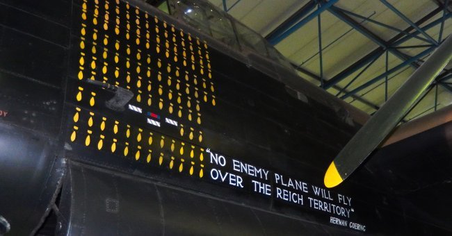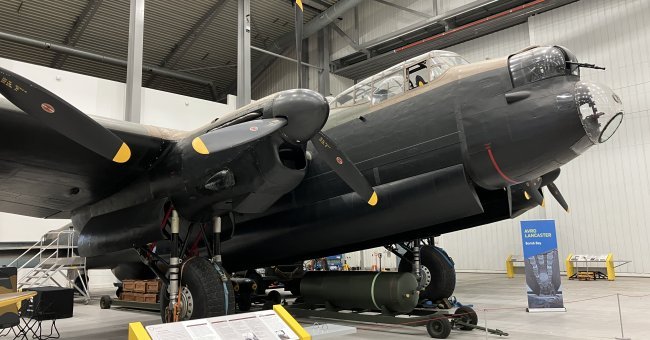 The roots of the Lancaster can be found in the twin-engined Avro Manchester, which was yet to enter service. On the 20th February 1940 Avro met with the Air Ministry to discuss a four-engined version of the Manchester. Nine months later, on the 19th November 1940, Avro got the green light from the Air Ministry on, what was known at that time, the Manchester Mk III. The prototype would have an increased wingspan of 10 ft 2 in, over the Manchester's original 90 ft 1 in wingspan, to accommodate the four 1,145-hp Rolls-Royce Merlin X engines, and also featured a third central fin on the tail. Flying from Ringway Airport on the 9th January 1941, with Captain Harry Brown and Sydney Thorn at the controls, the aircraft was a big improvement, and on the 27th January 1941 it was sent to the Aeroplane and Armament Experimental Establishment based at Boscombe Down, where it would undergo intensive trials. The 28th February 1941 saw the aircraft officially named the Lancaster. No. 44 Squadron at RAF Waddington would receive the prototype during September 1941 to undergo evaluation and for crew training. The second prototype flew on the 13th May 1941 and was powered by Rolls-Royce Merlin XX engines and featured a twin-finned tail layout, with the third central fin now removed, and it was this prototype that production models would derive from. The Lancaster housed a crew of seven, which consisted of pilot, bomb-aimer, flight engineer, navigator, wireless operator, mid gunner and rear gunner. The first production Lancaster B.I flew on the 31st October 1941 from Woodford Aerodrome, powered by the 1,280-hp Rolls-Royce Merlin XX, giving the aircraft a top speed of 275 mph, range of 2,530 miles with a service ceiling of 24,500 ft. Armament consisted of eight 0.303-in machine-guns, two each in the nose and mid-upper turret and four in the rear turret. Bomb load was 8,000lb. No. 44 Squadron at RAF Waddington was the first to be equipped with the new aircraft, when they received three on the 24th December 1941, as they began to replace their twin-engined Handley Page Hampdens. They also used the Lancaster for its first operational sortie when four laid mines in the Heligoland Bight on the 3rd March 1942. It was not until five month later that the general public were informed of this new aircraft, when on the 17th August 1942, twelve Lancasters, six each from Nos. 44 and 97 Squadron, attacked a U-boat diesel factory in Augsburg, Germany. The raid itself was to confirm that sending heavy bombers on unescorted daylight sorties was unfeasible as of the twelve Lancasters sent on the raid only five returned. During this raid Squadron Leader John Nettleton and Squadron Leader John Sherwood were both awarded the Victoria Cross. The 18th August 1942 saw Bomber Command's new Pathfinder force undertake its first operation when Flensburg, Germany was attacked and No. 83 Squadrons Lancaster B.Is would be involved in marking the target. The operation was a failure as winds took the bomber force off course and areas of Denmark were mistaken for Flensburg. As with a number of other aircraft, the Lancaster relied on the Rolls-Royce Merlin engine, and as a result the engine was in danger of becoming in short supply. To counteract this a Lancaster B.II prototype was proposed, this used four Bristol Hercules engines, and flew for the first time on the 26th November 1941. The first production Lancaster B.II flew on the 2nd September 1942 and was powered by the 1,735-hp Bristol Hercules XVI engine which gave the aircraft a top speed of 265 mph, range of 2,370 miles and a service ceiling of 18,500 ft. Armament was eight 0.303-in machine-guns, two each in the nose and mid-upper turrets and four in the rear turret, with a bomb load of 14,000lb. September 1942 saw three Lancaster B.IIs from the first production batch sent to the Aeroplane and Armament Experimental Establishment and nine were sent to equip No. 61 Squadron based at RAF Syerston. This squadron was to perform service trials and had previous experience with the Lancaster after formally being a Lancaster B I squadron. The Lancaster B.II made its operational debut on the 11th January 1943 when two took part in a raid on Essen, Germany, and during its six months with No. 61 Squadron they did not lose any of the aircraft assigned to them. The Lancaster B II flew its last mission on the 23rd September 1944 with No. 514 Squadron. One of the main drawbacks of the Bristol Hercules powered Lancaster B.II was its low service ceiling and it was the slowest of all the Lancaster variants and after 301 had been produced, production was ended. Although a few remained in service, even into the post-war era, they were mainly used as test beds and the last Lancaster B.II was scrapped in 1950. The next variant was the Lancaster B.III, powered by the 1,420-hp Packard Merlin engine, it also featured minor changes to the equipment and the bomb-aimer's 'bubble' was enlarged and this would be produced alongside the Rolls-Royce Merlin engined Lancaster B.I. The Lancaster B.III had a top speed of 275 mph, range of 2,530 miles with a service ceiling of 24,500 ft. Armament was eight 0.303-in machine-guns, with two each in the nose and mid-upper turret with four in the rear turret. Bomb load was 12,000lb. It was the Lancaster B.III, modified to carry the Barnes Wallis designed 'Upkeep', known as the 'Bouncing Bomb', which was used for the Dambusters Raid, officially known as Operation Chastise, when on the 16th May 1943 Lancasters of No. 617 Squadron, led by Wing Commander Guy Gibson, and having to drop their bombs from just 60ft, attacked the Mohne, Eder and Sorpe dams in Germany, breaching the first two and causing minor damage to the third. This came at a heavy price as of the nineteen aircraft sent out, eight failed to return with 3 aircrew taken prisoner and 53 killed, whilst as a result of the flooding caused by the breached dams, around 1,300 people died. The Lancaster B.VI was next, the two La